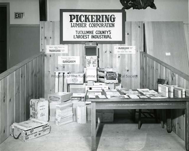 A display of the various products made in the box factory,also has the figures for the Pickering Co. output per year - 78,000,000 Board feet per year. Annual payroll exceeded $3,000,000. 15,000,000 plush board feet for box shook per year.Collection