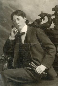 A Black and white portrait of an unidentified man sitting in chair with arm resting on the chair arm and his cheek, other hand holding gloves.
