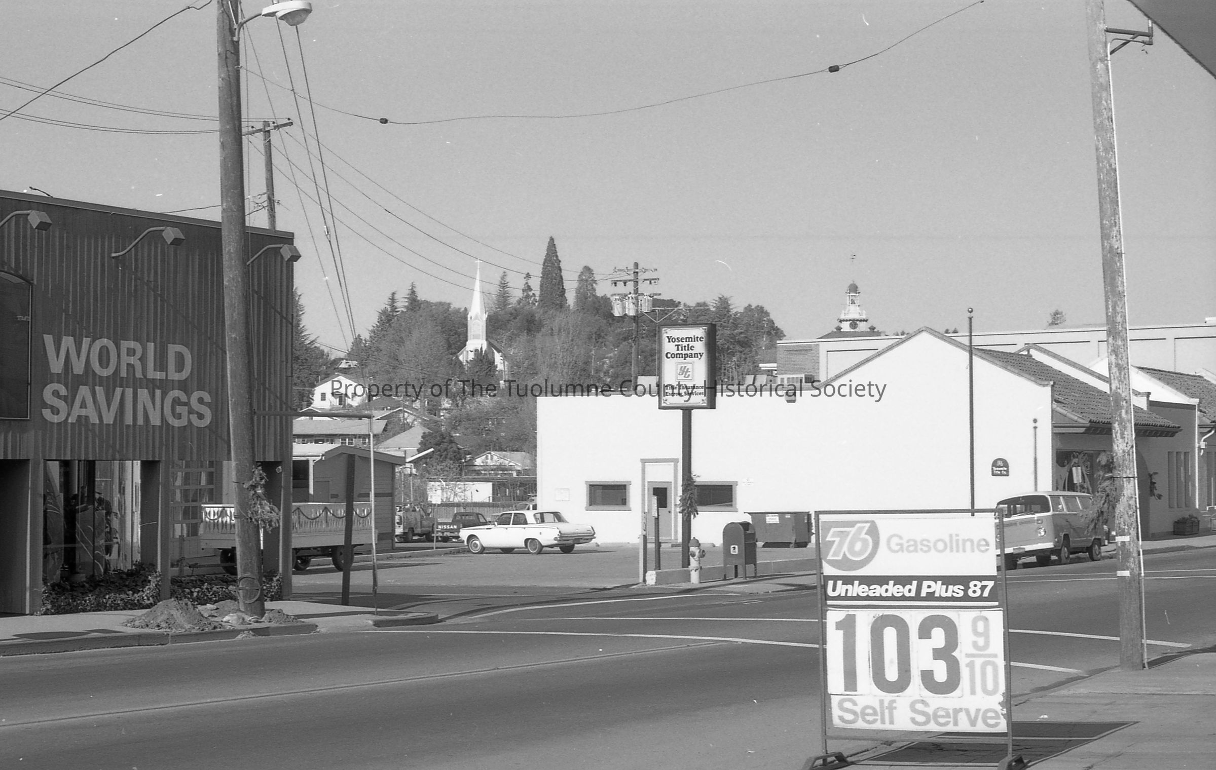 242 S. Washington St, World Savings Bank, Yosemite Title Co. parking lot. Looking northwest across W. Church St. 1989 (2 photos)Collection