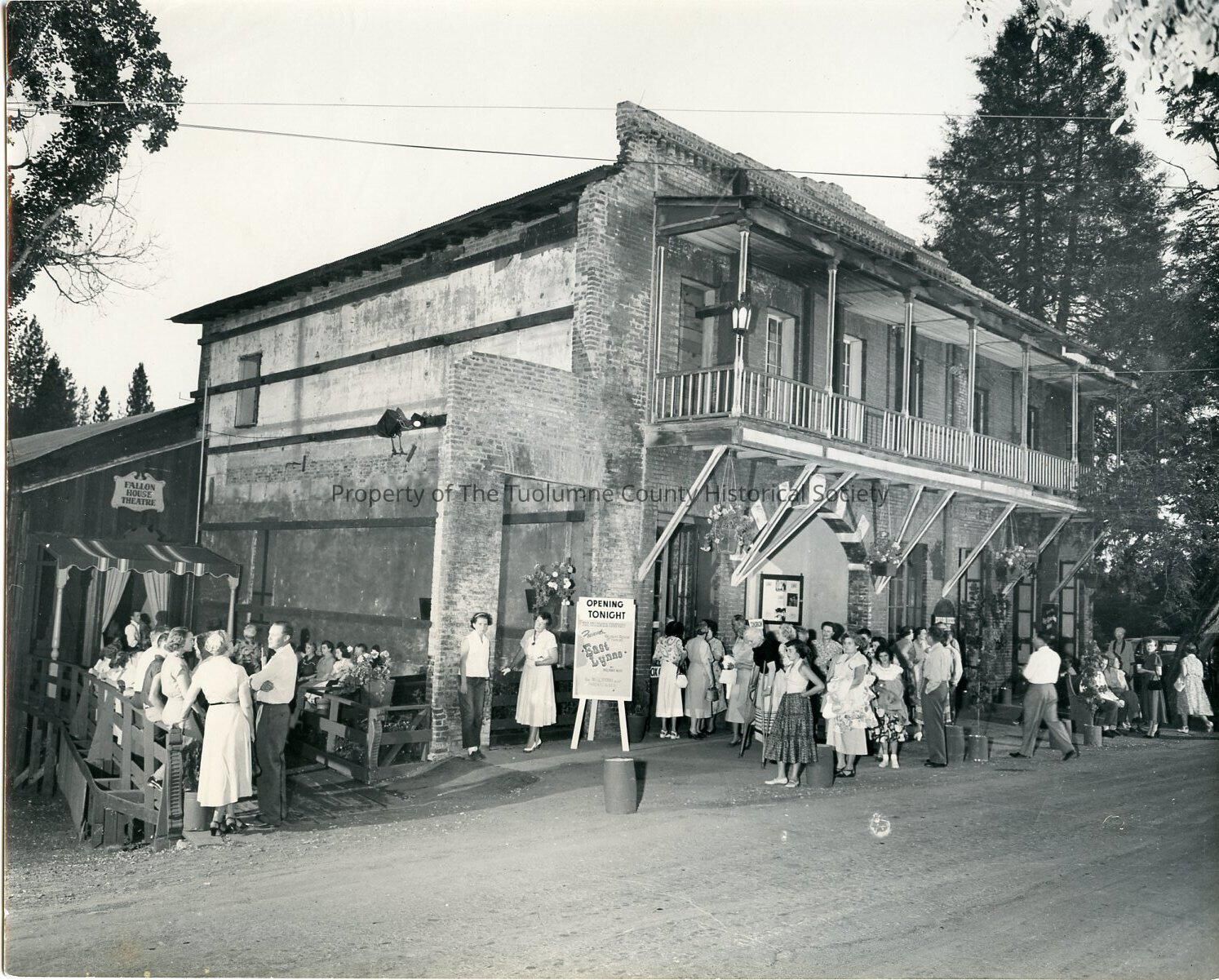 A 8" x 10" Black and white photo of a large group of people waiting outside the Fallon Theater in Columbia. It is openign night for "East Lynne" play.