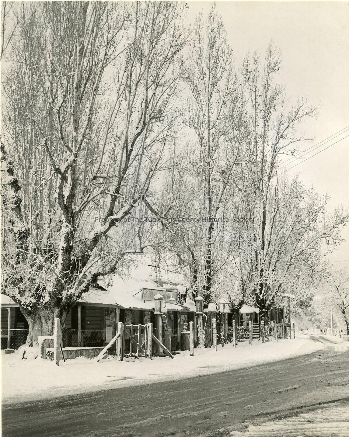A 8" x 10" Black and white photo of the Mississippi House on Shaws Flat Road, Sonora. The Mississippi House is covered with snow.