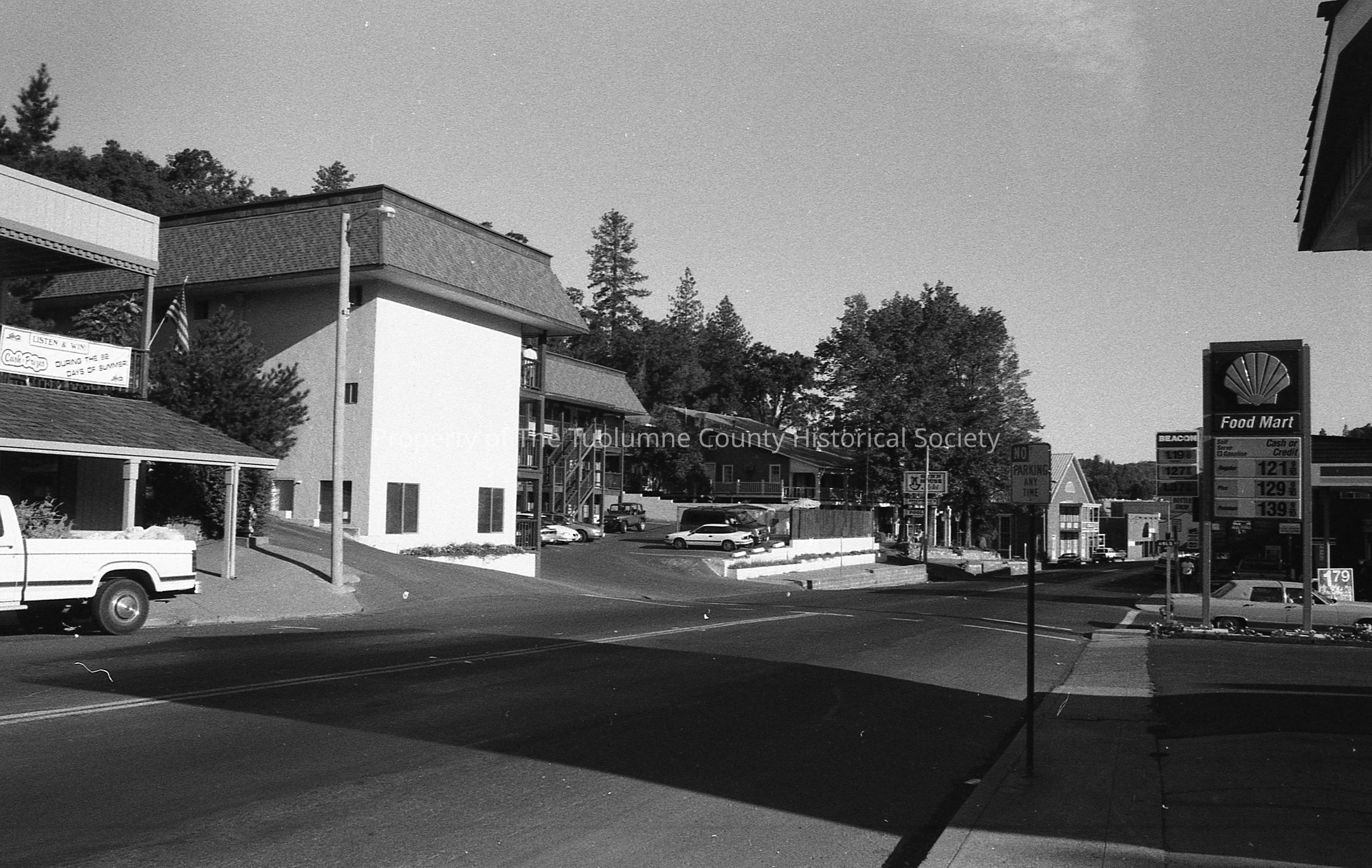 S. Washington St., looking north from 359 S. Washington St. Sonora Townhouse Motel, Gunn House Motel, Opera Hall, Beacon Gas, Shell Gas. 1994Collection