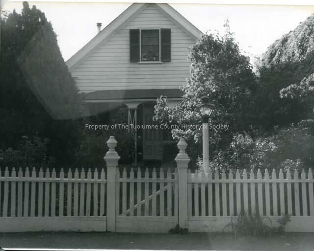 Wilson-McConnell home, Columbia. Clapboard residence with covered front porch, front garden and decorative picket fence in foreground.Collection