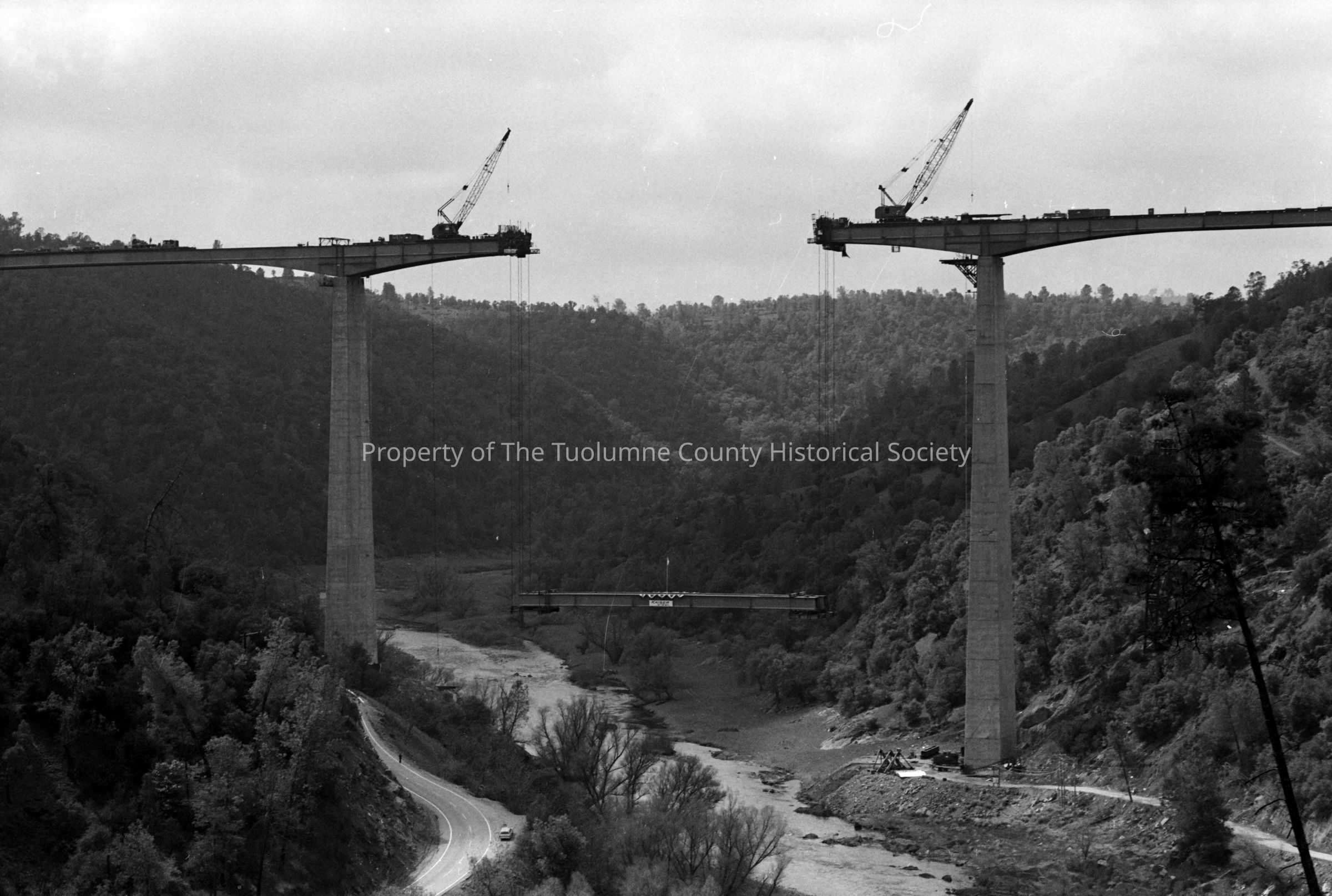 Archie Stevenot Bridge, State Hwy. 49, crossing the Stanislaus River at the Tuolumne/Calaveras county line. Raising the center section. (Collection of 13 images)Collection
