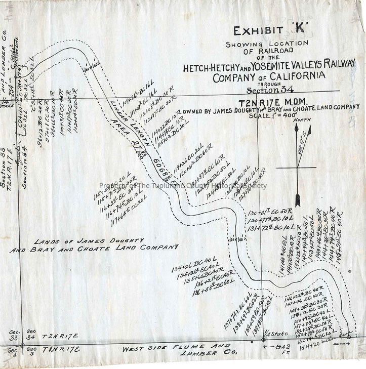 railroad right of way map, Hetch Hetchy & Yosemite Valleys Railway, James Doughty, Bray and Choate Land Company, Dutch Creek, Hetch Hetchy & Yosemite Valley Railway
