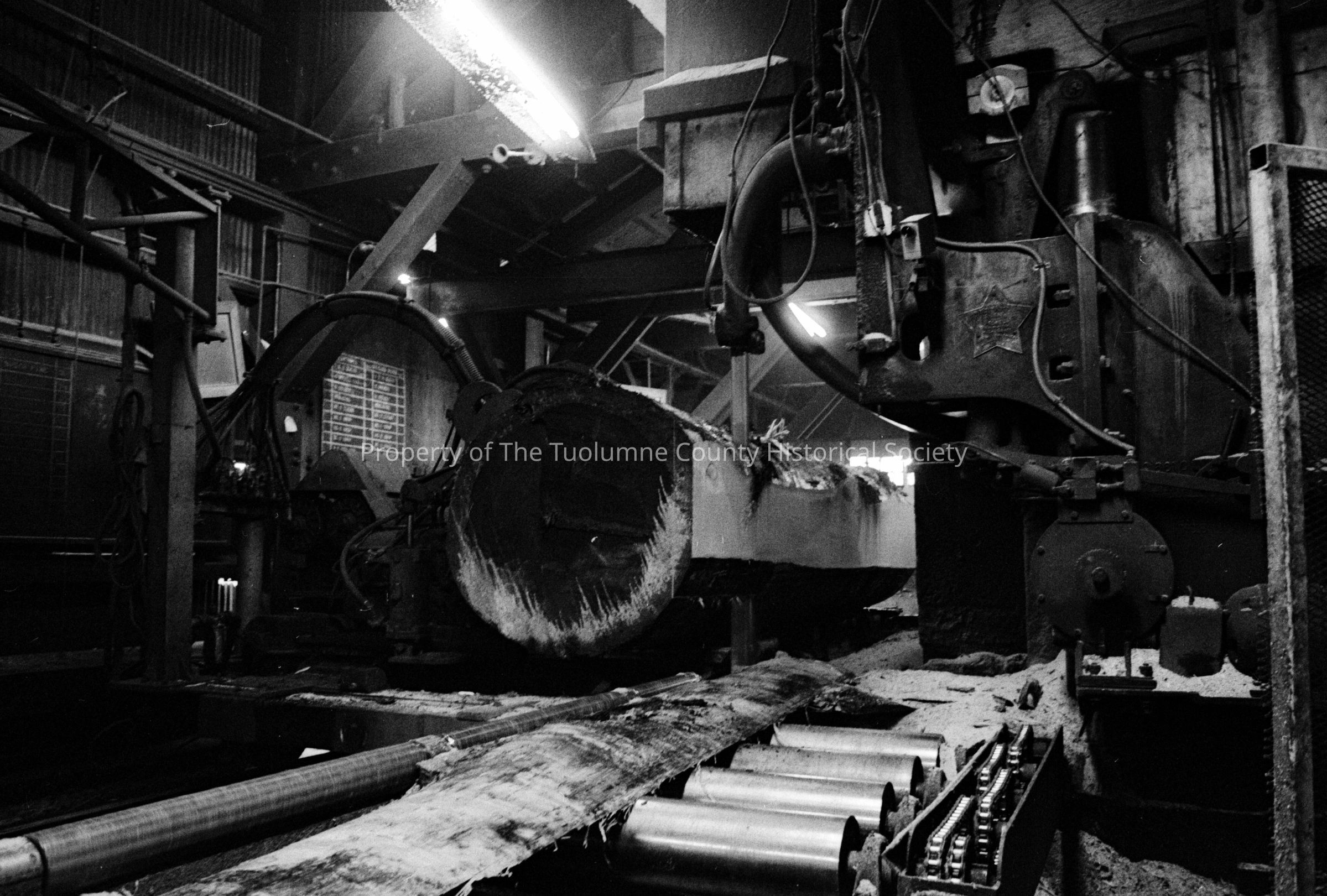 Louisiana-Pacific Saw Mill. Large Sugar Pine going passing through the band saw.Entry/Object ID