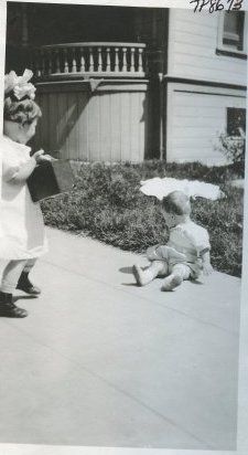 Unidentified young girl and infant, "belly" porch in background. Album # 10 Rocca Collection