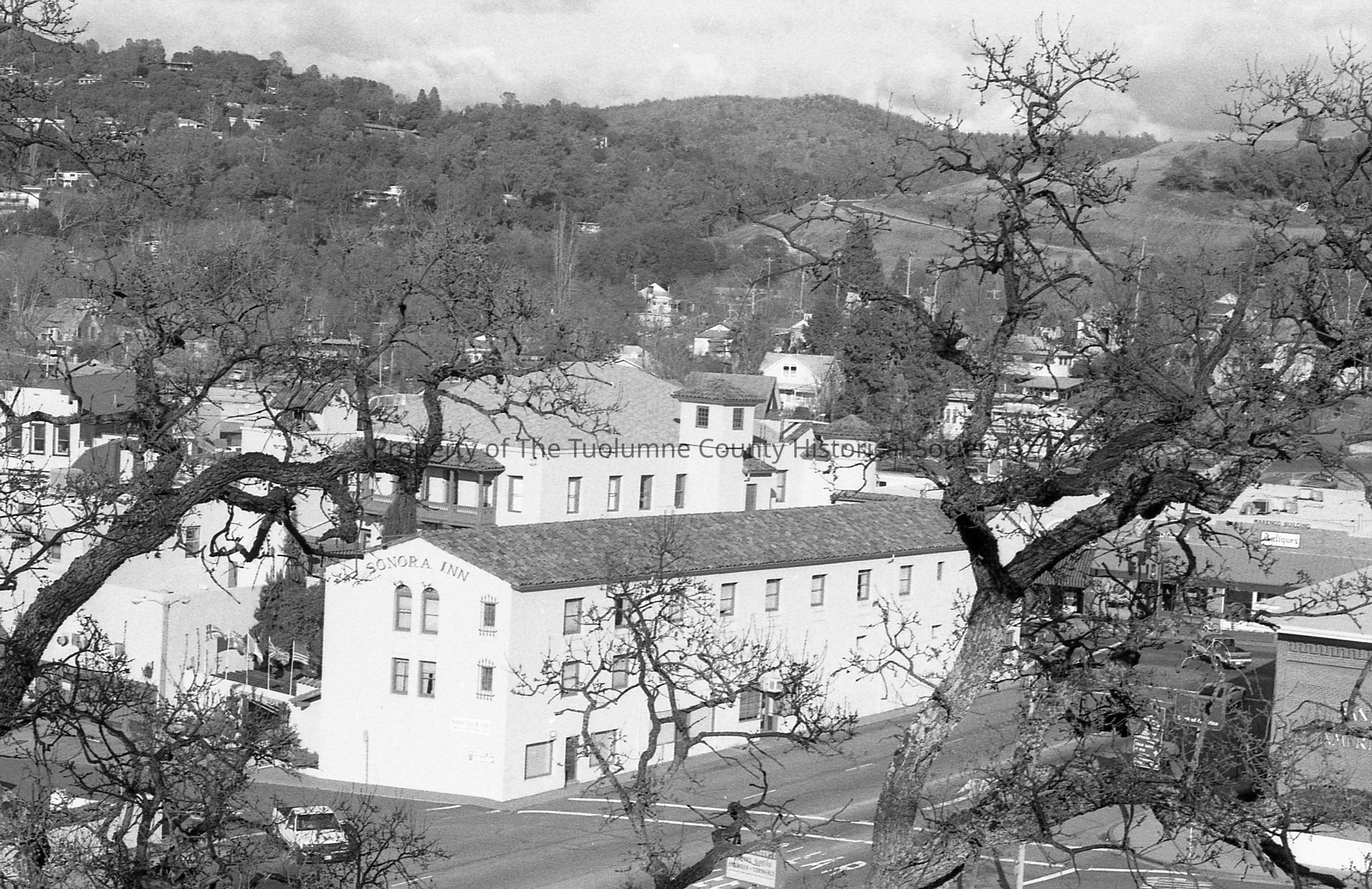 Sonora Inn and Bank of America from Knowles Hill. 2 photos. 1994