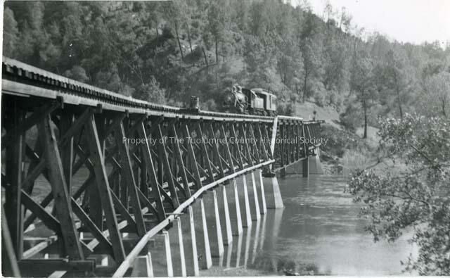 Sierra Railway bridge and train, Melones, Stanislaus River
