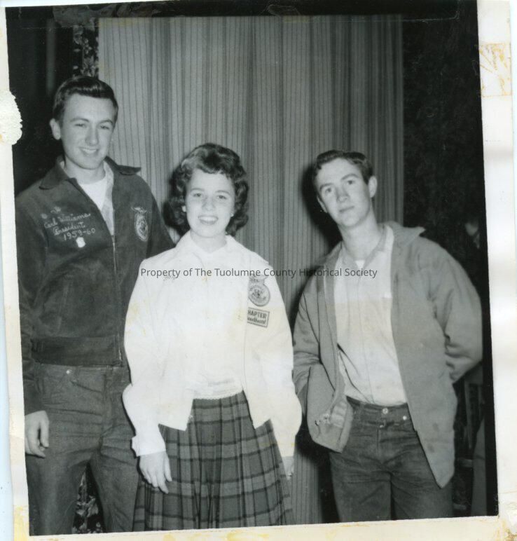 A black and white photo two unidentified men and one unidentified lady. FFA Chapter Sweetheart, 1960.