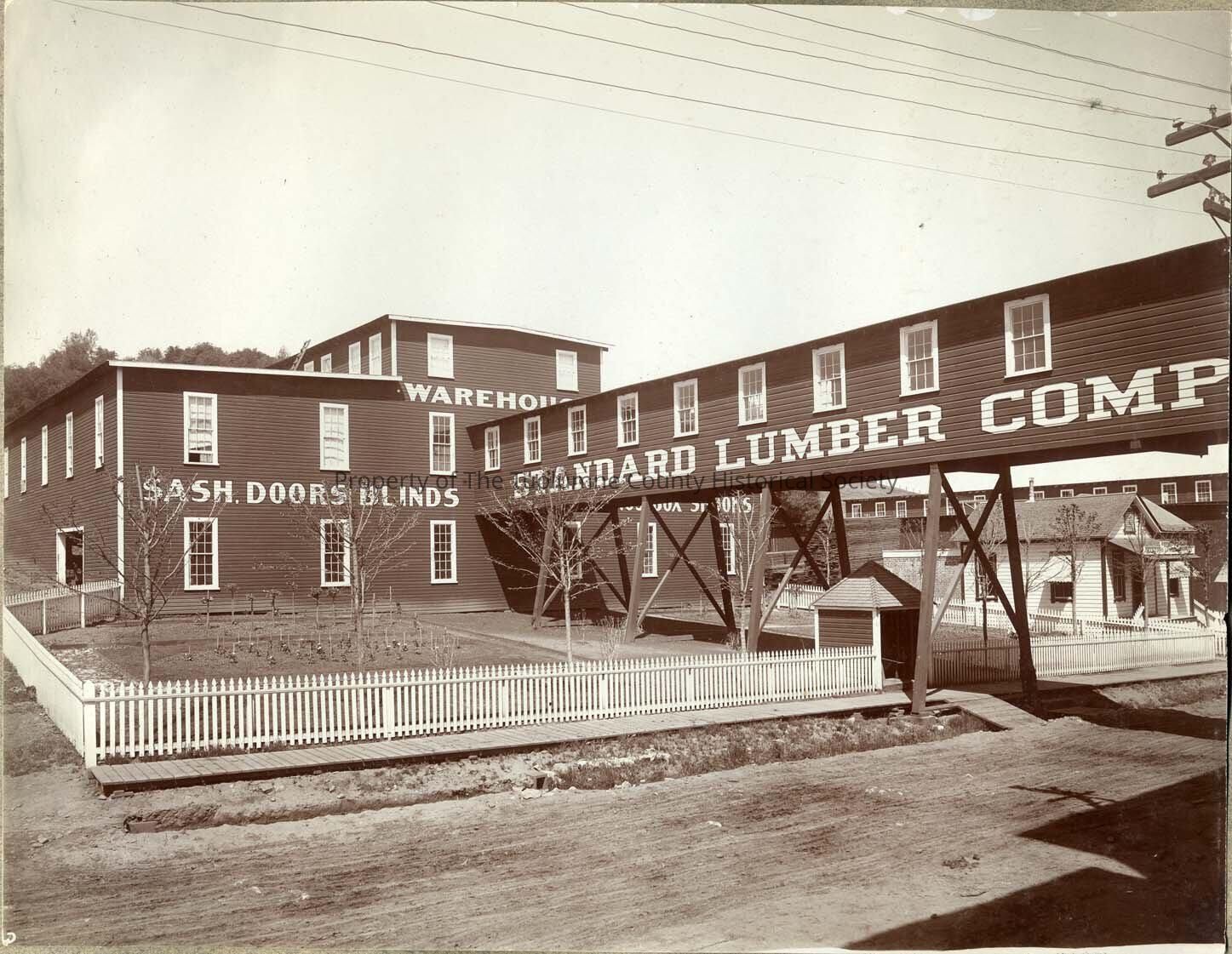 Standard Lumber Company in Sonora CA. The elevated walkway was over Washington Street. The white building on the right was the sales office.