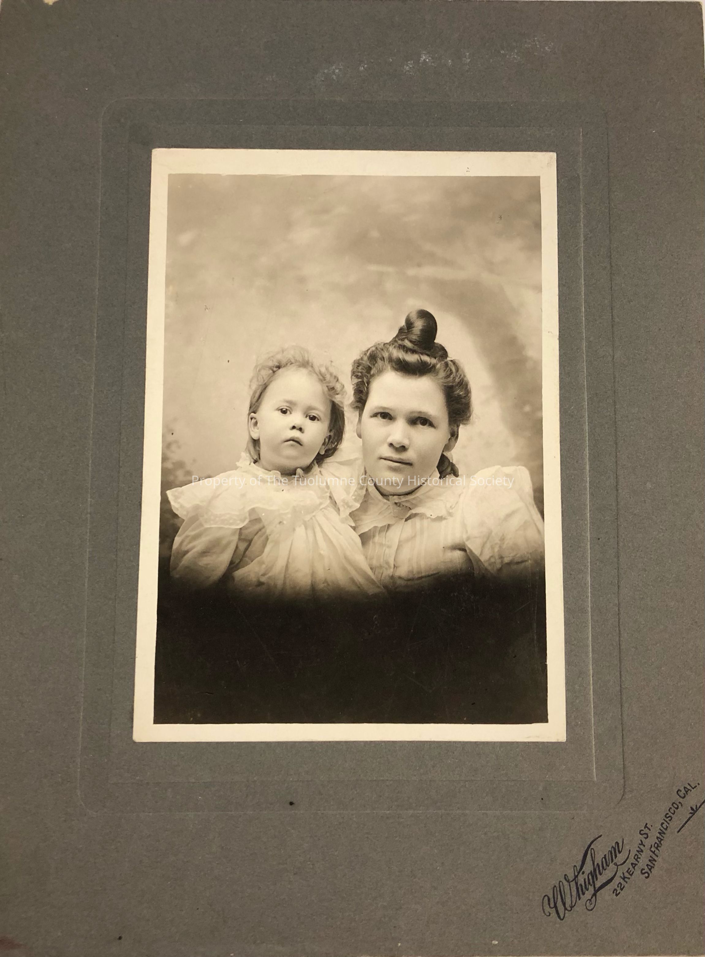 Photograph of mother and child taken by Whigham, 22 Kearney St., San Francisco, Cal.