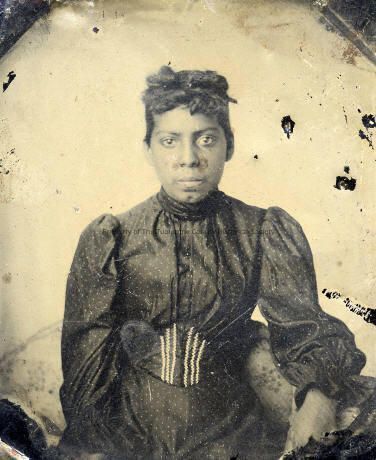 Ethnic Culture, 1890's, cummerbund, Dress with dark neckline, puff sleeves, Tin type photo