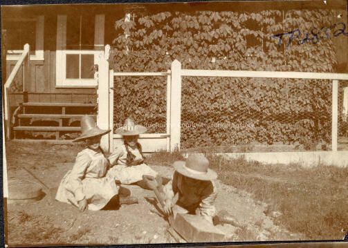 A black and white photo of a group of unidentified Children at play at the Golden Gate Mine site, Sonora.