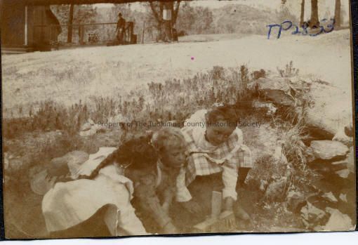 A black and white photo of an unidentified group of Children at play at the Golden Gate Mine, Sonora.