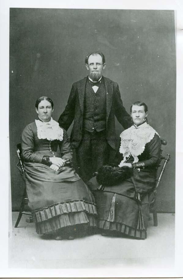 A 6.5" x 4-1/4" Black and white photo of two unidentified women and one unidentified man.
