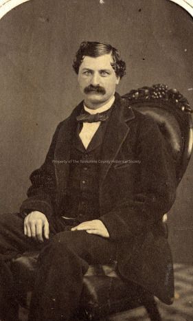 A black and white portrait of an unidentified man with dark hair , side part, mustache. Album #11 Sewell Collection. C. 1890-1910 Type: Paper