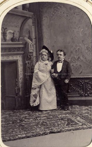 A Black and white portrait of a little man and woman (Little People). Album #11 Sewell Collection. Type: Paper