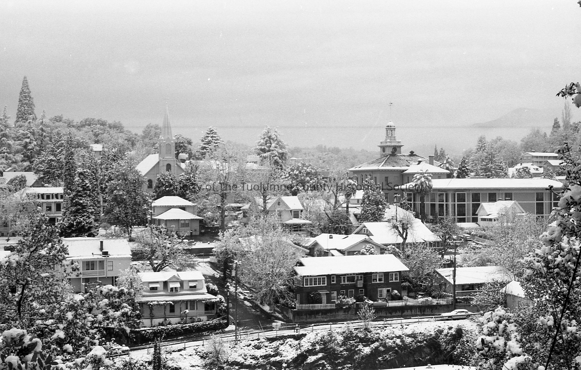 Sonora overview with snow from W. Church St. and June St. Looking north and east.(2 photos) (Collection of 10 similar images.)Collection
