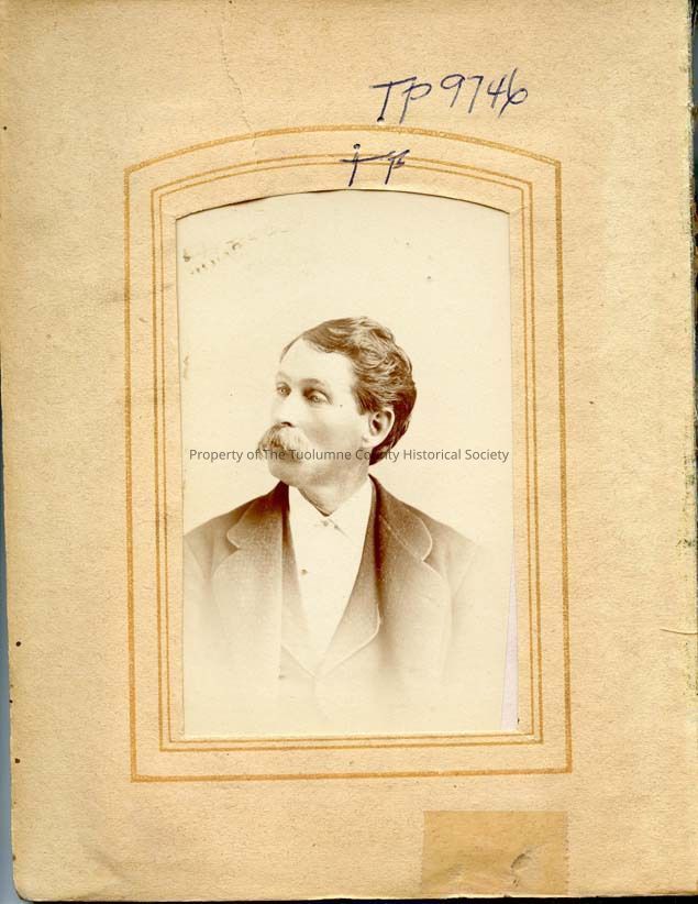 A 3.5" x 2.5" Black and white portrait of an unidentified man with mustache and wear a suit with white shirt.