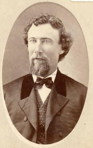 Portrait- Unidentified Man - He is wearing a suit jacket with a velvet collar, white shirt and bow tie. His vest is pokable-dotted. His hair is curly and he has a mustache and goatee.