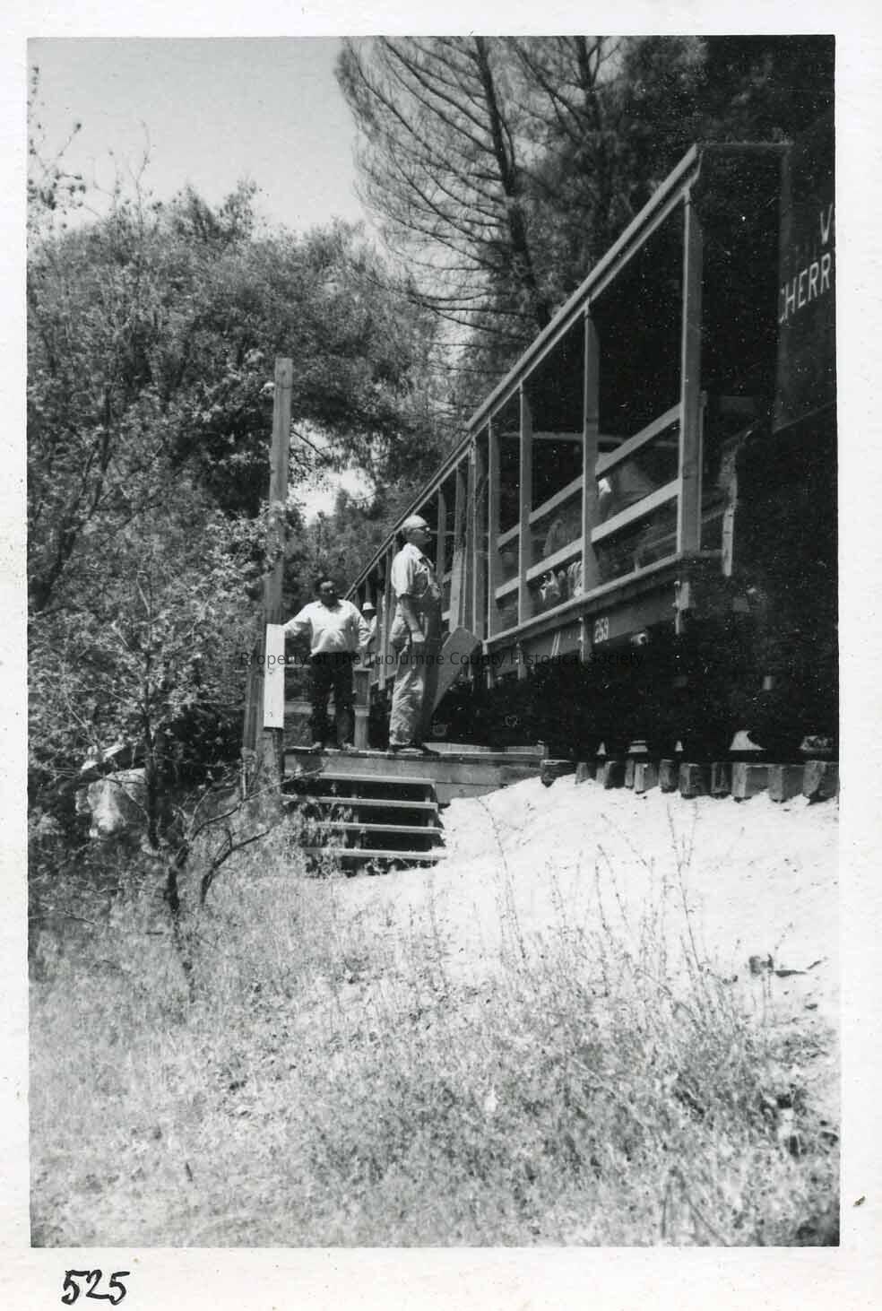 Car trucks, Cottle. Crew prepares to assist tourist passengers to disembark the train.