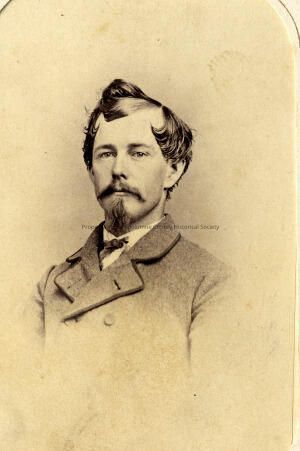 A Black and white portrait of an unidentified man with dark hair, side part, beard, mustache. Album #11 Sewell Collection