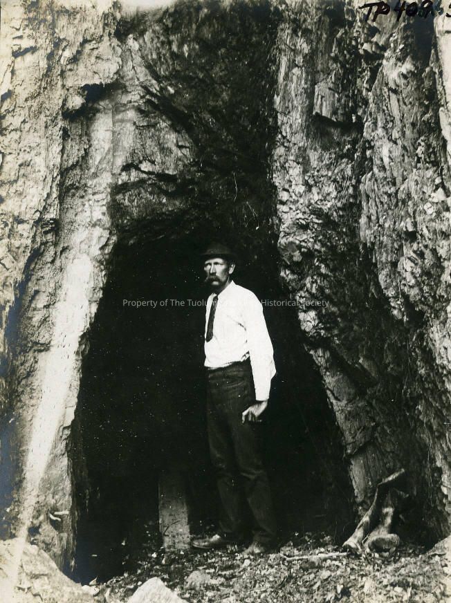 Portrait-Unidentified man standing inside of large Tree Trunk Type: Paper