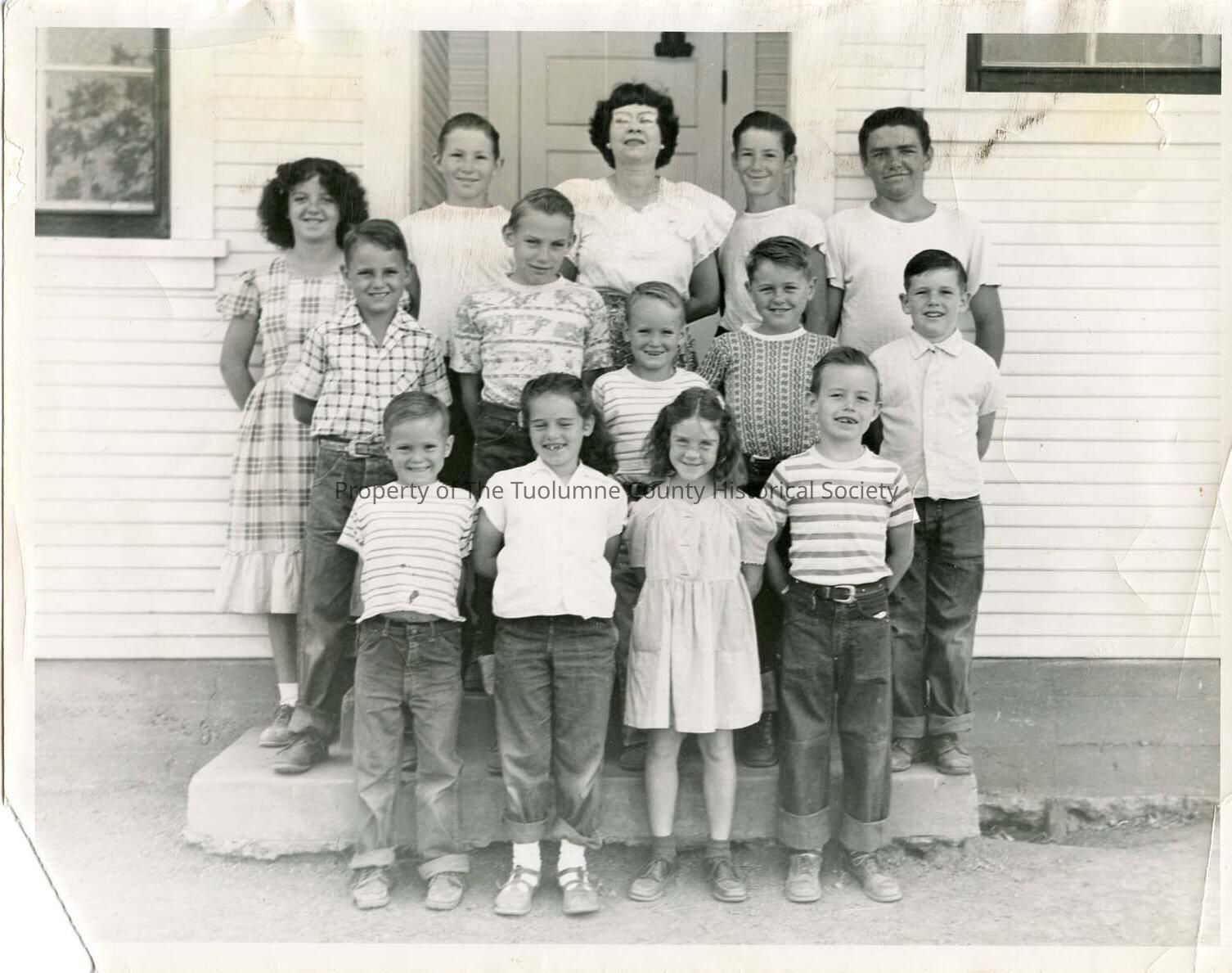 Don Pedro Grammar School, With students/Mrs. M. Poe, Sonora, Don Pedro School, Mrs Poe, students