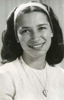 A black and white portrait of an unidentified young lady with long dark hair with headband, necklace. Photo from the Union Democrat files