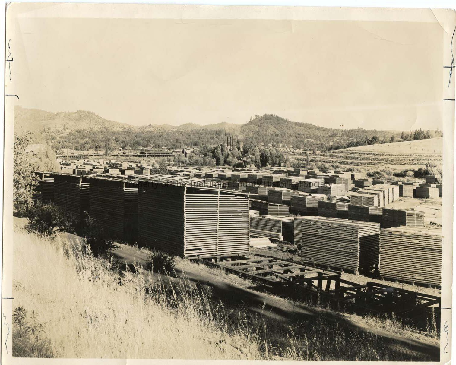 Lumber Drying in yard - West Side Lumber Co. Tuolumne. This is the Sonora Yard. Type: Paper