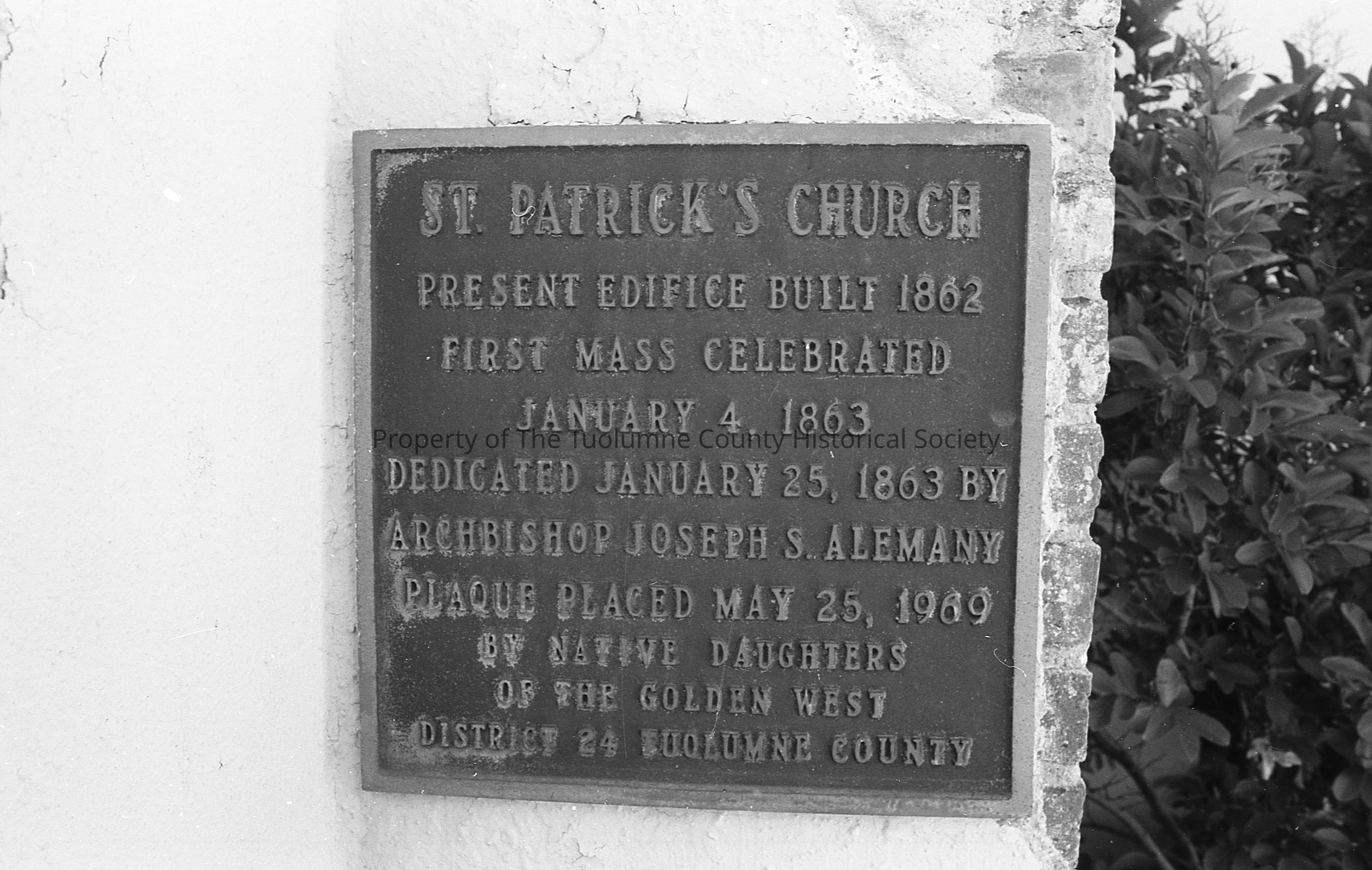 St. Patrick's Catholic Church, Historic Marker plaque, 1969