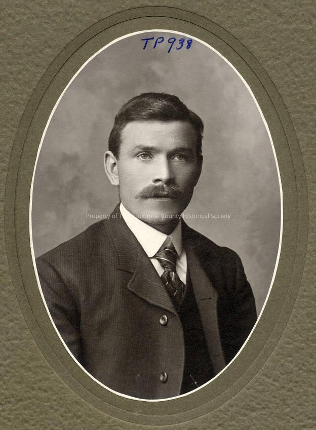 Portrait - Unidentified man in a suit and vest with a regular tie and a mustache.