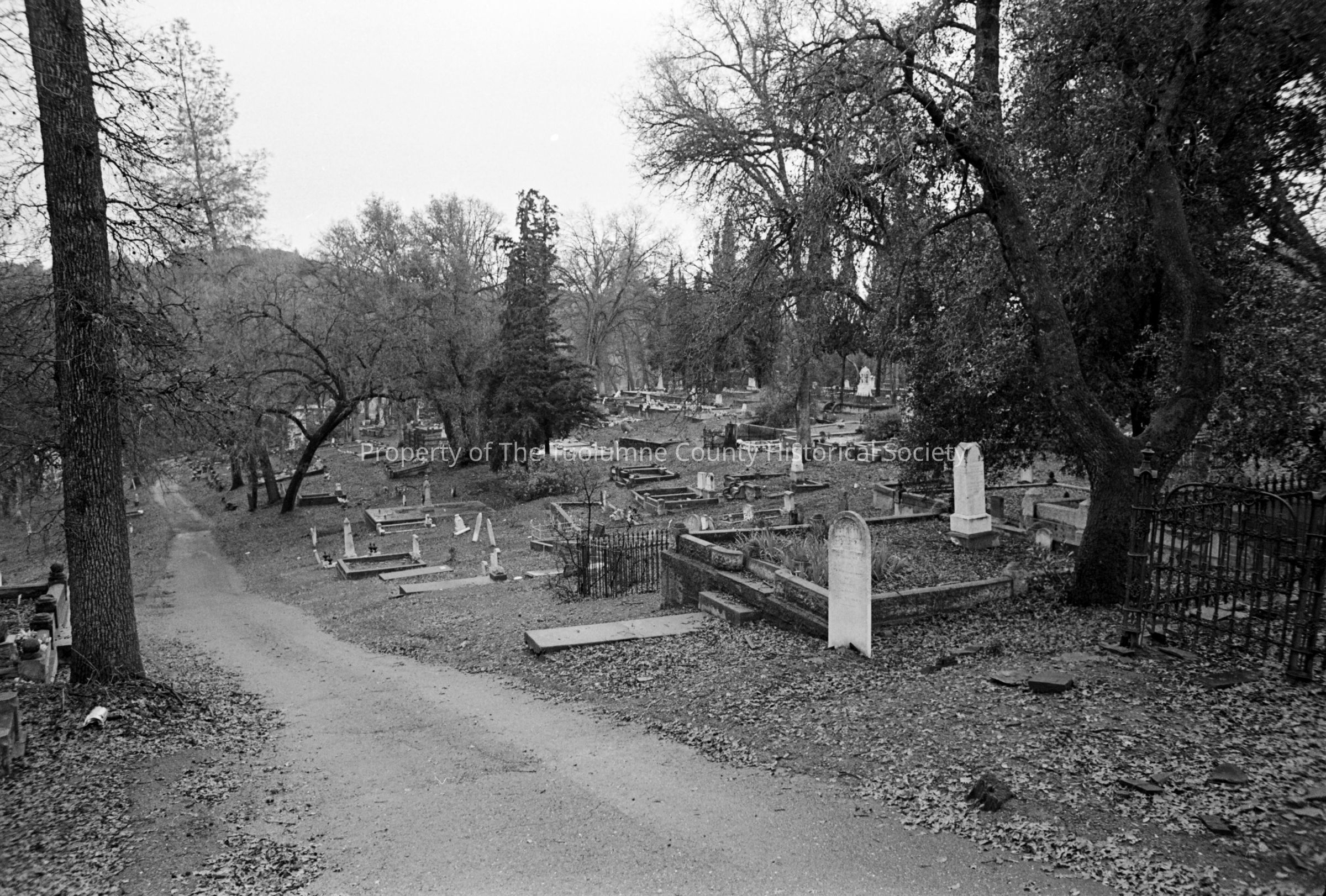 Old City Cemetery Sonora at the end of West Jackson. The view is from the far end on the lower road, looking south back towards the entrance. 1973Collection