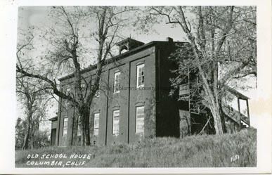 A black and white photo postcard of the Old Grammar School House, Columbia, CA.
