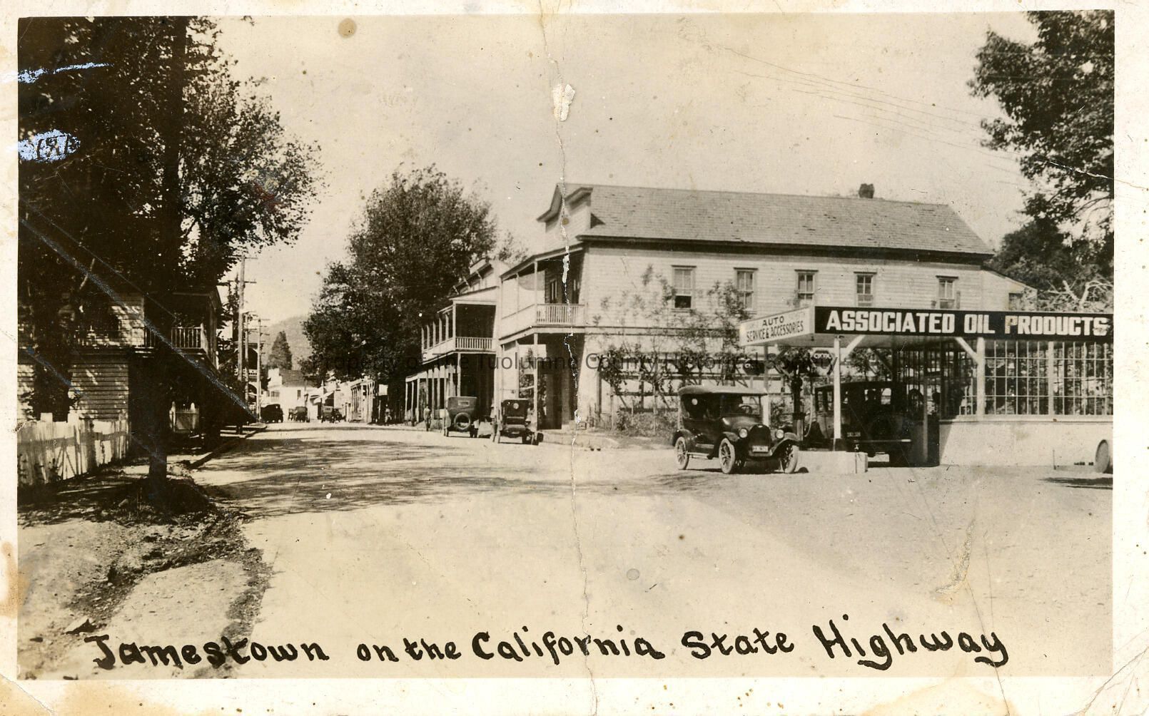 Jamestown, 1924. Message on back written in Italian. Jamestown Hotel is just past the oil company On back up-side-down says M. Marengo.