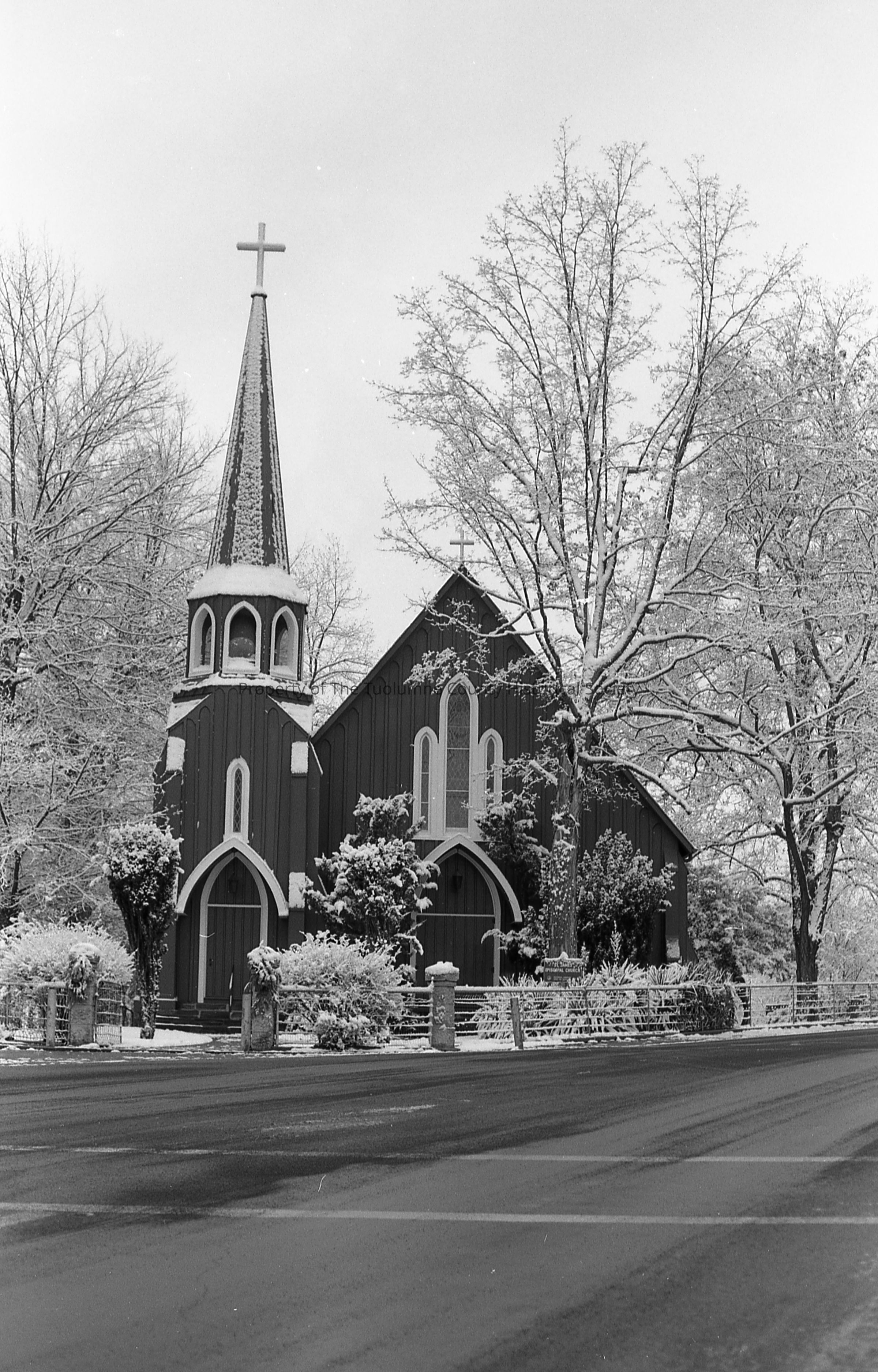 St. James Episcopal Church (Red Church), with snow. (Collection of 9 similar images.)