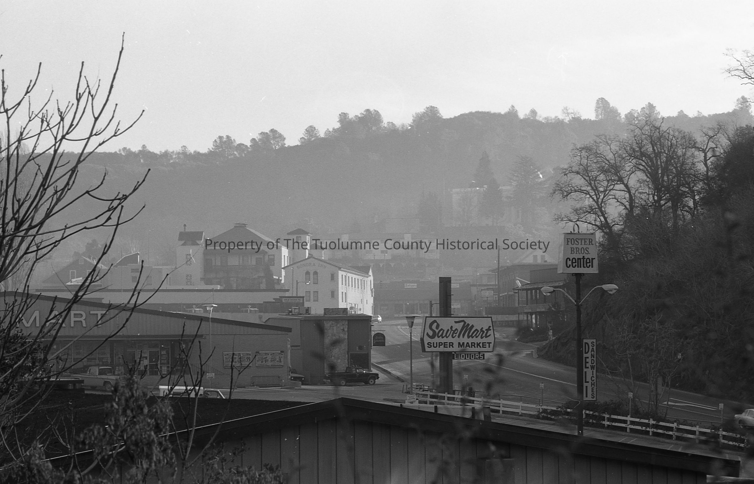 Foster Bros. Center on Stockton St. Save Mart Super Market and Sonora Inn. Photo taken from Linoberg St. near Bradford St., looking east.Collection