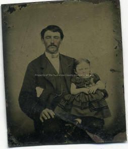 Portrait-Man with a child on lap, not identified. Type: Tintype