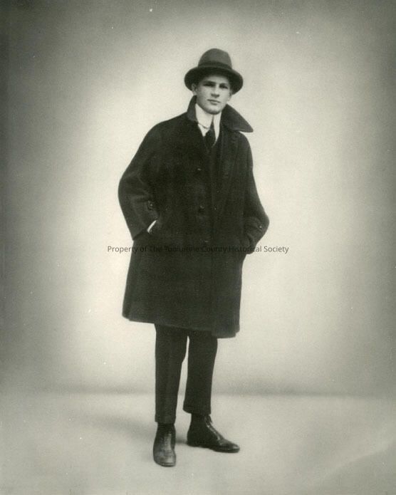A black and white copy of a portrait of an unidentified man wearing suit, hat and top coat. Type: Paper