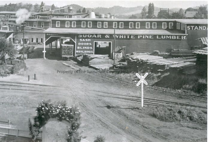 Standard Lumber Company's Sonora Plant, taken from the Tuolumne County Hospital. Shows one of the lumber storage