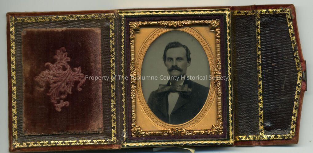 Red Velvet box, Unidentified man with large bow tie, Gold frame around picture, Mustache