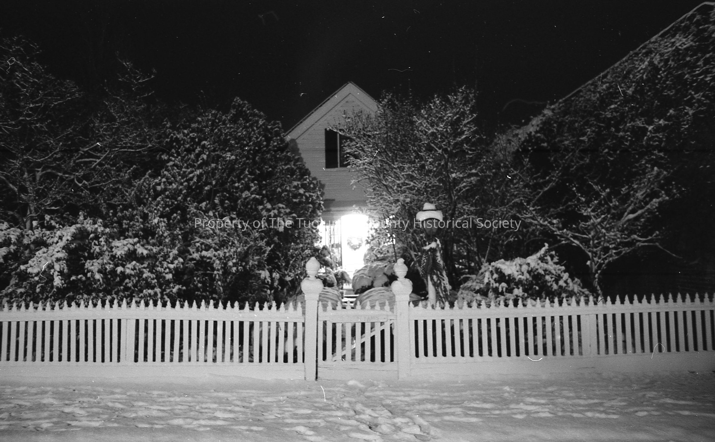 Columbia State Historic Park, Main St. with snow. Wilson/McConnel house and fire house. (2 images) (Collection of 24 similar images on film roll beginning with "916")Collection