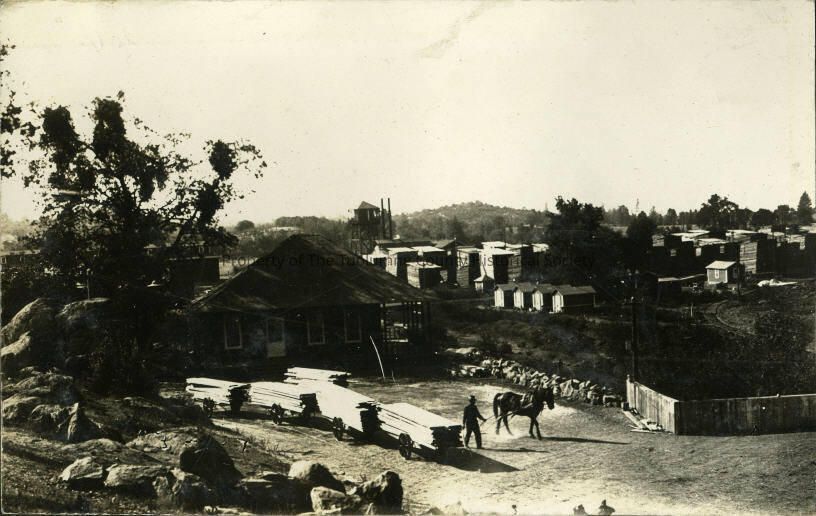 A 3.5" x 5.5" Black and white photo the Standard Lumber Co. Photo shows unidentified man and horse pulling flatbed trailer with lumber.