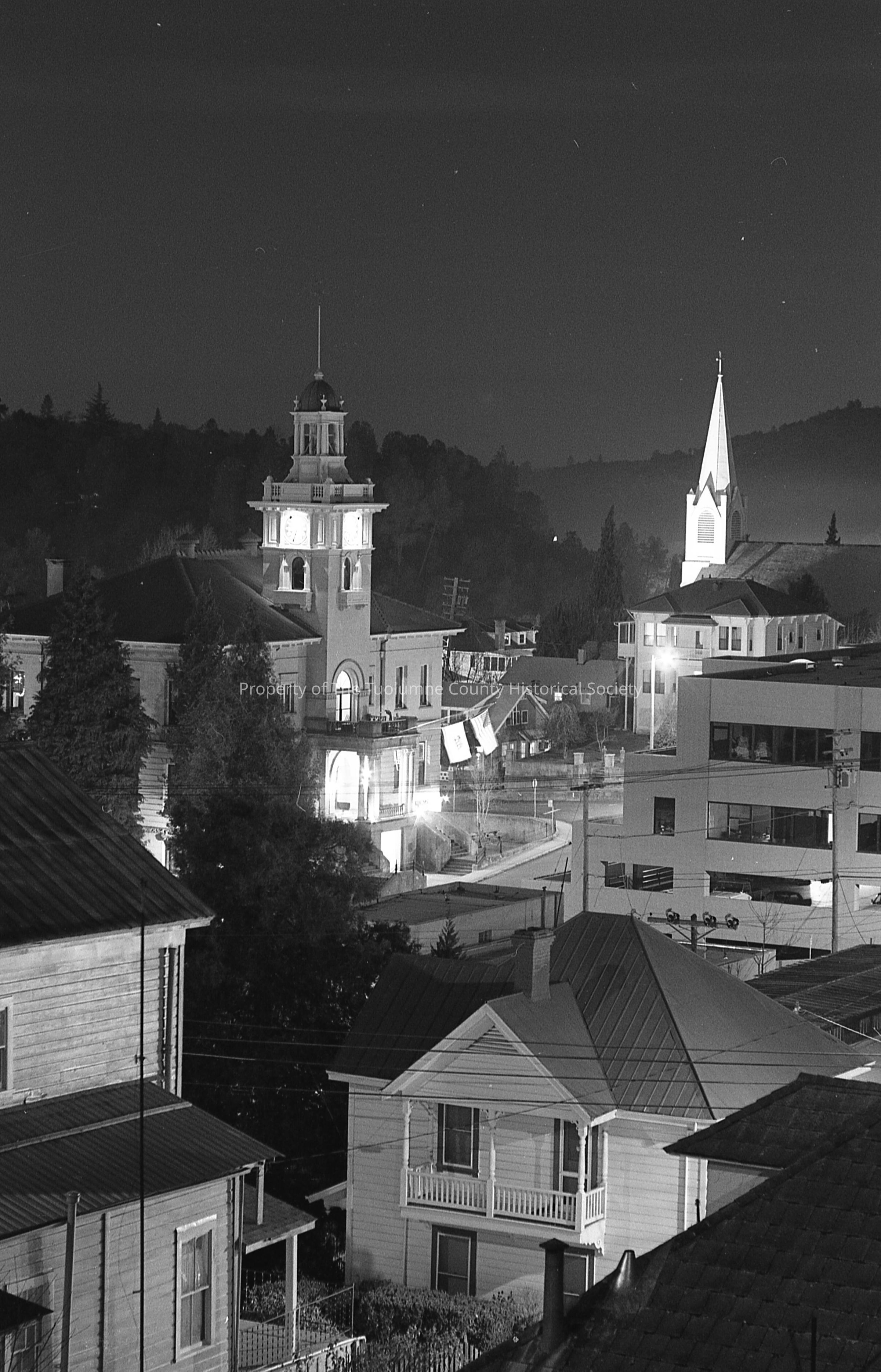 Tuolumne County Courthouse at night. (A collection of 3 similar images.)
