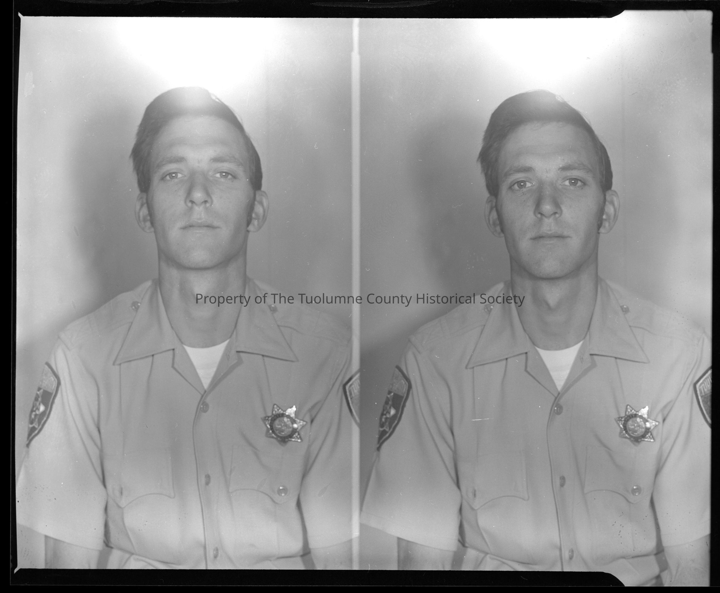 Black and white photo negative taken to be used to identify members of the Tuolumne County Sheriff's Office. Tuolumne County Jail Employee, name not known.Collection