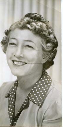 A black and white portrait of an unidentified lady Peterson possibly last name. Wearing jacket and poka-dot blouse. Short curly hair. Photo from the Union Democrat files.