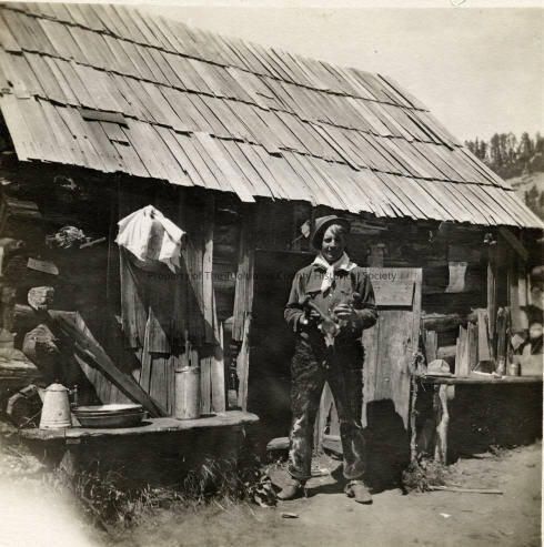 Cabins, People, Log Cabin, Unidentified Man, Deer Skull/Antlers