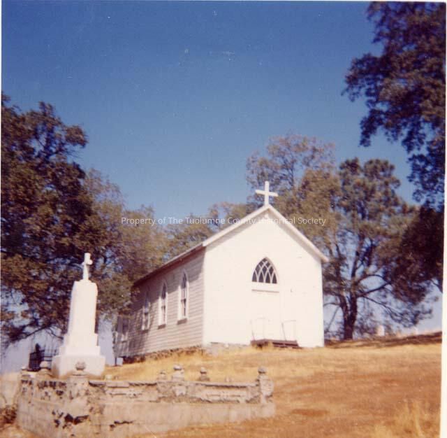 A color photo of St. Francis Xavier Catholic Church, Chinese Camp. Church built by Scription,1860.