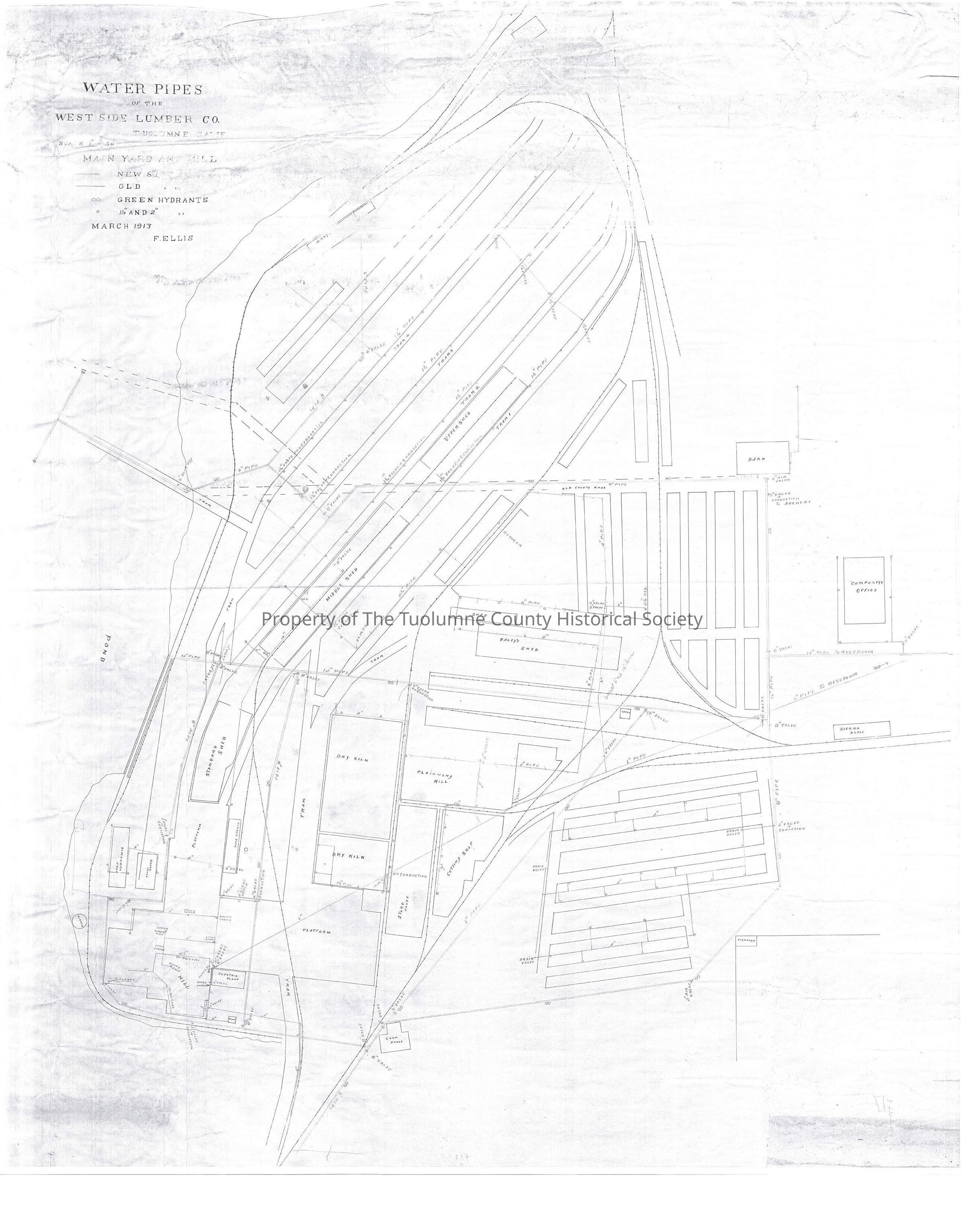 Maps showing water pipes in West Side Lumber Co's Tuolumne City Plant. By Fred Ellis